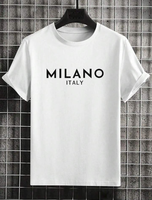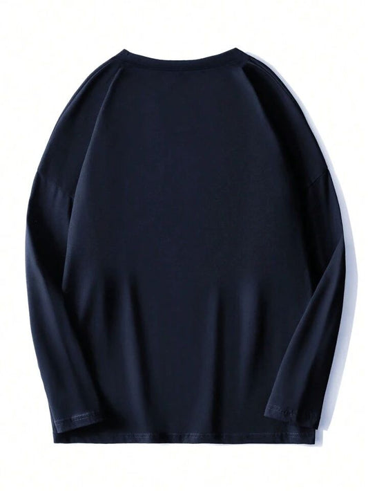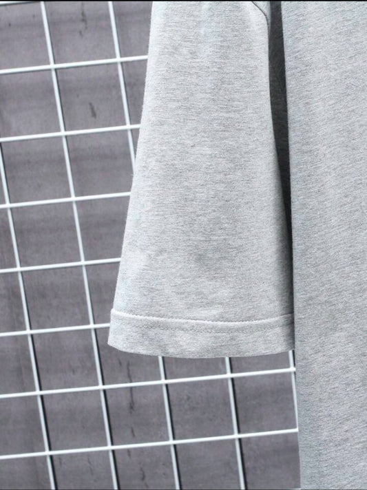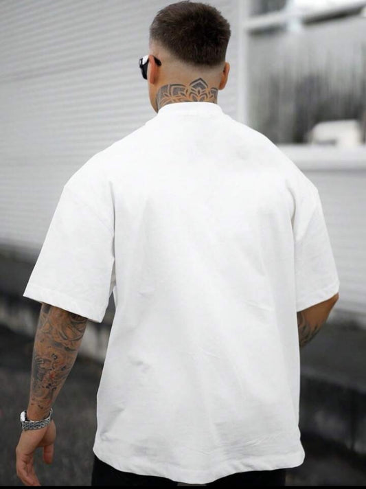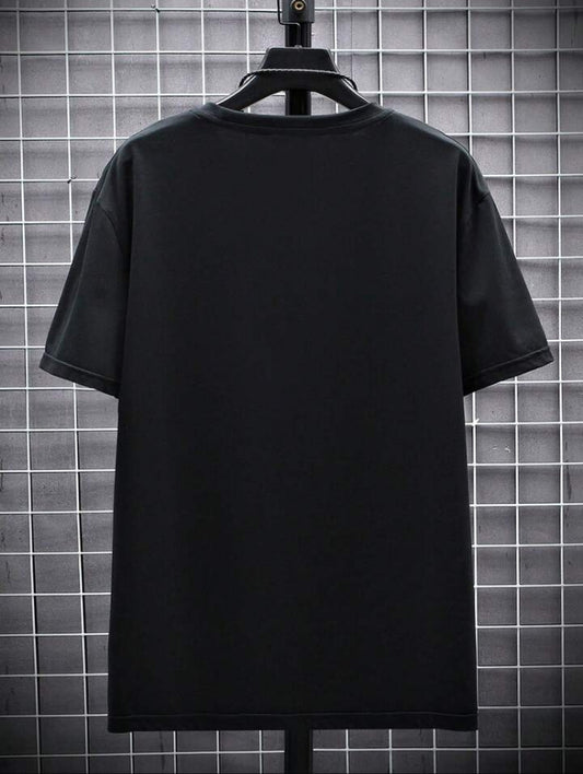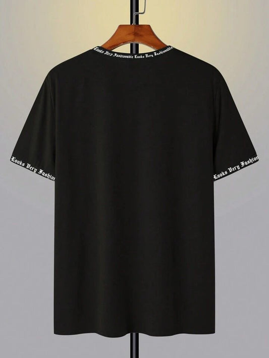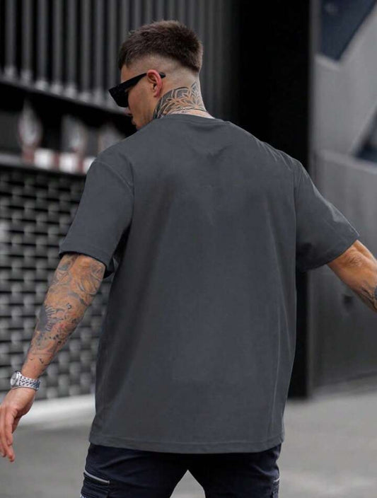 Men's Letter Printed Round Neck Drop Shoulder.