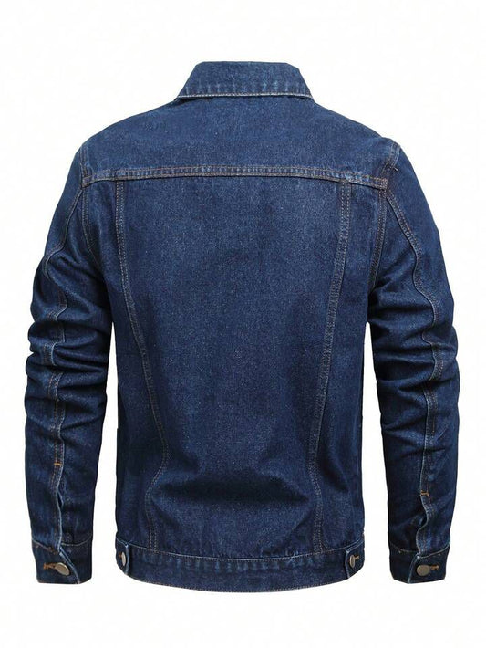Men's Hypemode Loose Casual Long Sleeve Dark Blue Denim Jacket