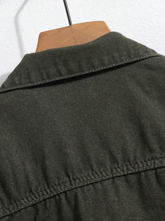 Men's Hypemode Loose Casual Long Sleeve Army Green Denim Jacket