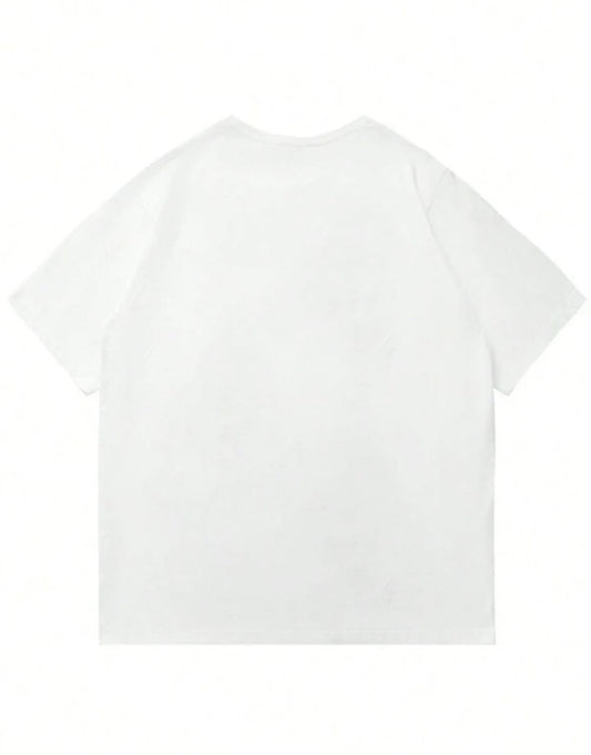 Men's One Letter Printed Round Neck Drop Shoulder.