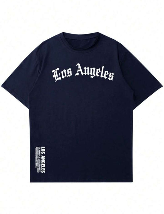Men's New Los Angles Printed Letter Drop shoulder.