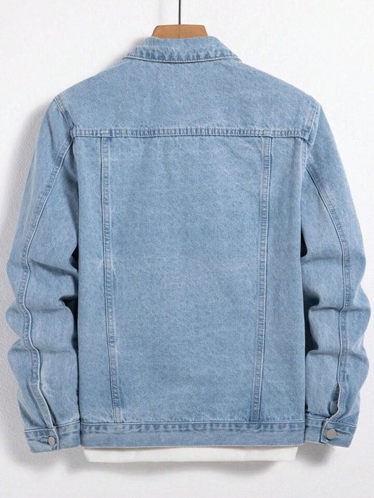 Men's Hypemode Loose Casual Long Sleeve Ice Blue Denim Jacket