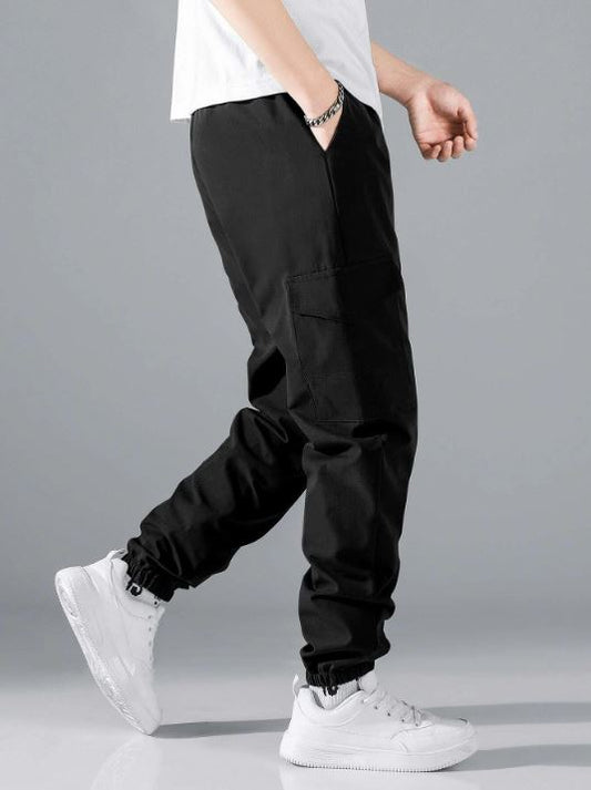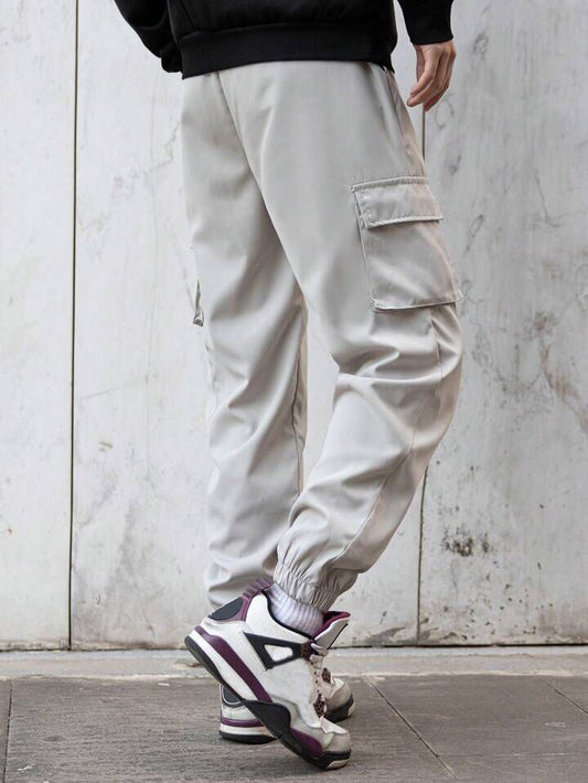 Men Cotton Top-stitching Flap Pocket Side Cargo Pants